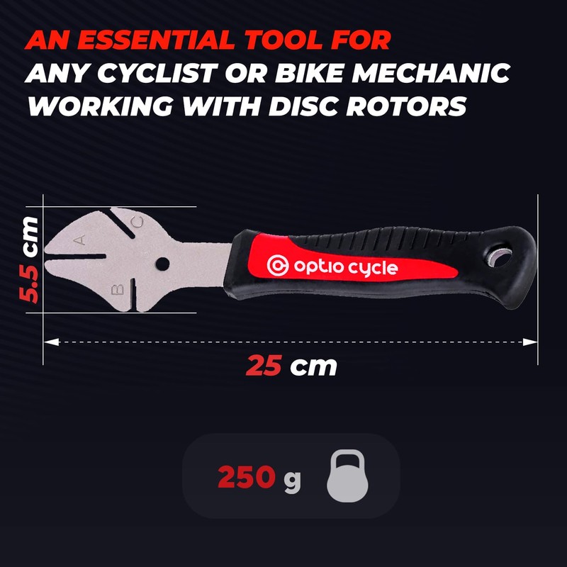 - PRECISE BRAKE ALIGNMENT: The Optio Cycle disc brake alignment tool helps correct bent rotors without removing the disc. Perfect for keeping your braking system in top condition for a smooth and safe ride.