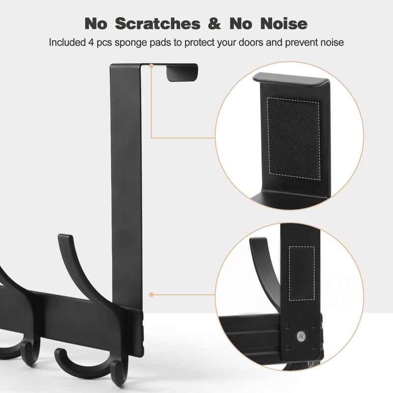- Prevent Scratches: The back of the door rack is filled with soft sponge to avoid noise as well as to prevent scratching the door; and the smooth edges prevent scratching hands and clothes