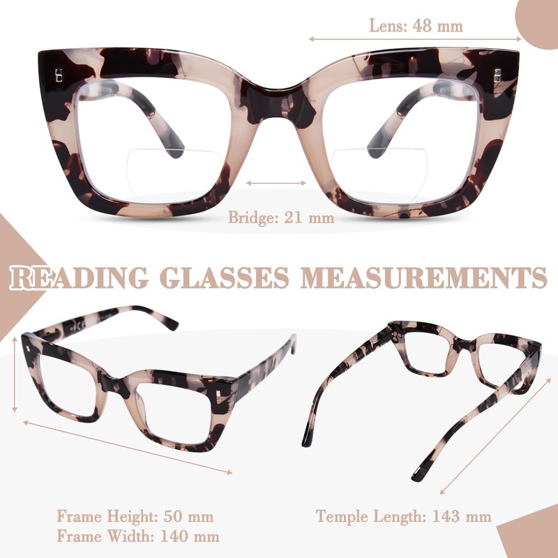 - Style Meets Comfort - Who says bifocals can’t be fashionable? The timeless cat-eye design flatters all face shapes, with comfortable frames and special metallic decors. Petite, medium, or wide faces—all get a perfect, confidence-boosting fit!