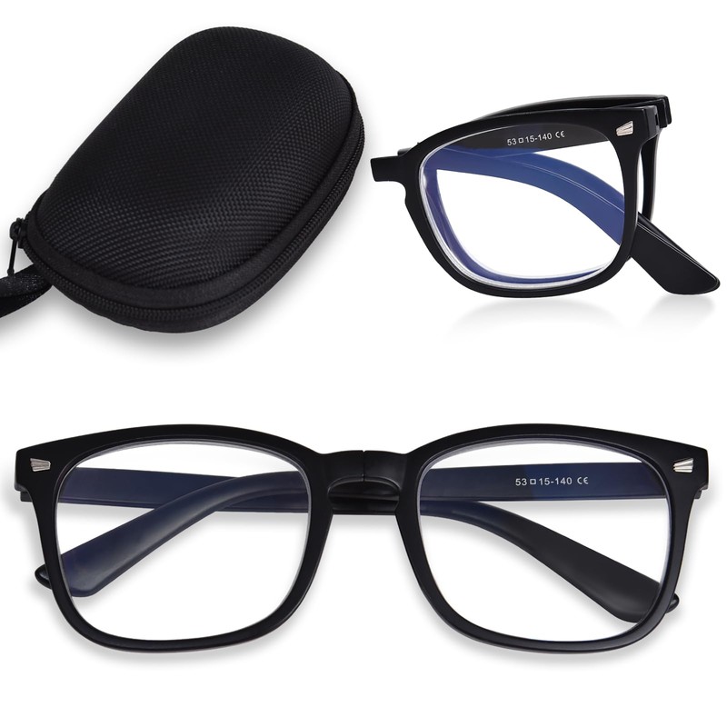 OPTOFENDY Folding Reading Glasses for Men Women, Portable Blue Light Blocking Glasses Readers with Zipper Case