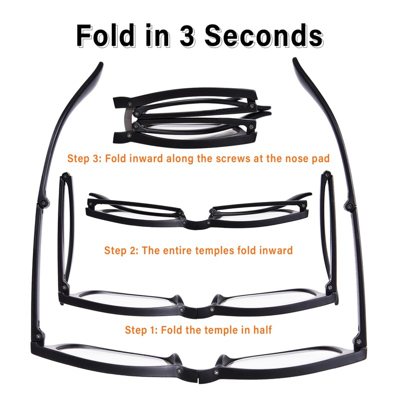 - ALWAYS WITHIN REACH - The creative folding design allows the readers for women to fold compactly. These foldable reading glasses come with an accompanying zipper case for easily into a pocket or purse, so you can always take them easily to restaurants, shopping malls, travel, work or wherever you may need them!