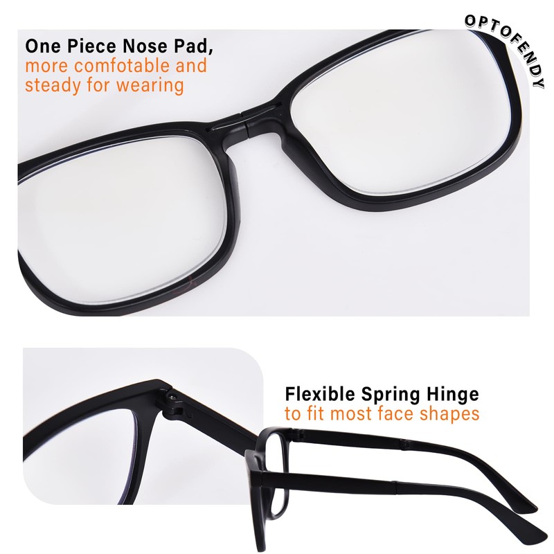 - HEALTHY FOR EYES- Get just the proper magnification you need to read with OPTOFENDY blue light reading glasses. Each lens helps to filter 99% of potentially harmful blue light produced by computers and other devices. So, you can keep reading glasses on—and your vision clear—when you are exposed to computer screens and other electronic devices, and natural sources.