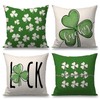 OPULANE St Patricks Day Pillow Covers 18x18 Set of 4 Lucky Shamrocks Clovers Green Decorative Throw Pillowcases Spring Holiday Decorations for Sofa Couch Farmhouse Home Decor
