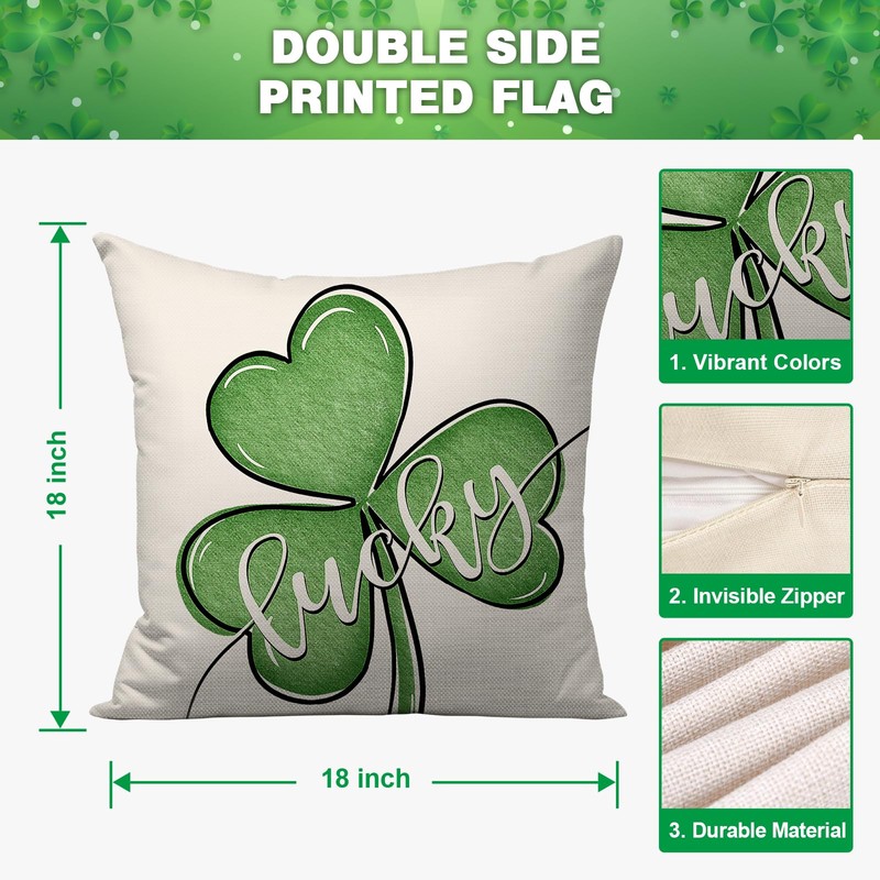- 【PERFECT SIZE】These st. patrick's day pillow covers fit 18 x 18-inch inserts or smaller. PLEASE NOTE: The listed size refers to the pillow insert size, not the pillowcase. To ensure the proper fit, each cushion case is made slightly smaller (approximately 0.5 inches)than the insert size.