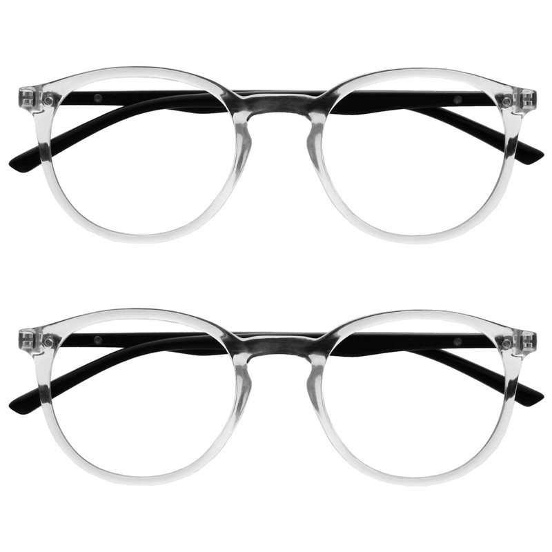 OPULIZE Met - Reading Glasses with Blue Light Blocking 2 Pack Slim Round Frame Spring Hinges Improve Sleep Computer Gaming Anti-Reflective Transparent Mens Womens BB60-C +3.00