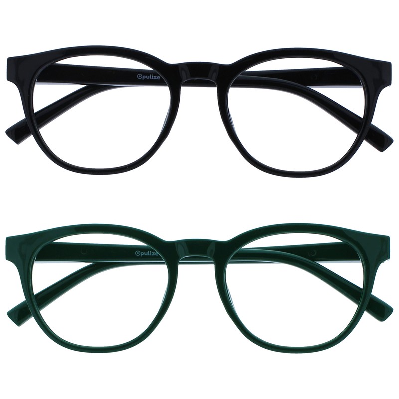 OPULIZE-Paquete de 2 Blu, gafas de lectura con bloqueo de luz azul, negro, verde, para juegos de ordenador, antideslumbrantes, para hombre y mujer, BB516 +1,00