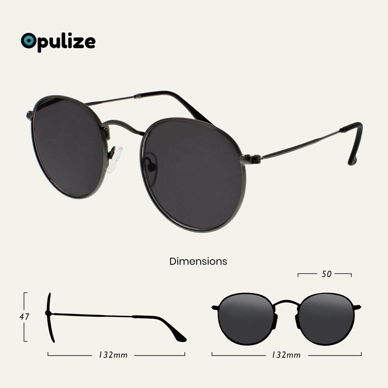 OPULIZE Sol Sun Reader Glasses Thin Rim Round Retro Metal Frames Scratch-Resistant Tinted Lens UV400 Protection Metal Grey Black Tips Men Women S94-7 +1.00
