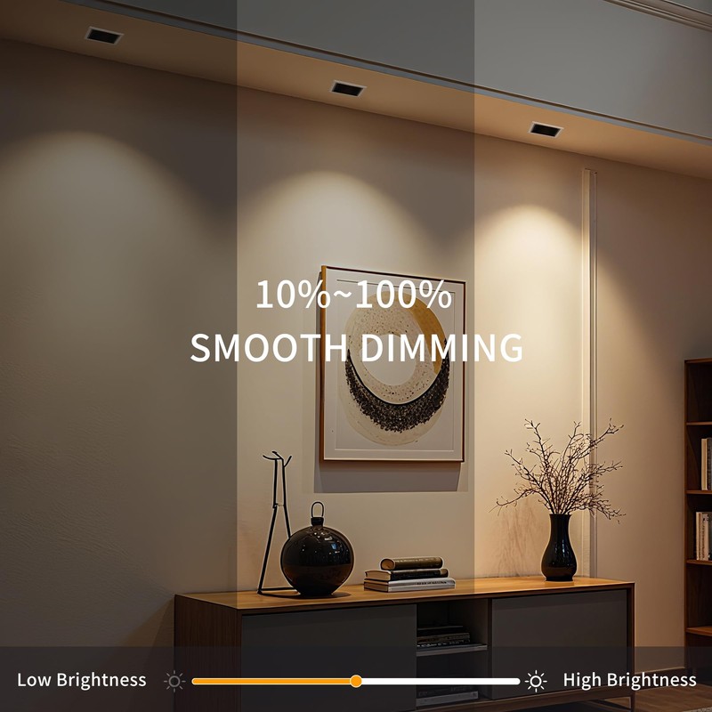 - Smooth 10%–100% TRIAC Dimming: Compatible with most standard dimmers, this recessed lighting fixture offers flicker-free dimming from 10% to 100%, letting you easily set the right mood while saving energy. Ideal for both task and ambient lighting in **modern interior lighting designs.