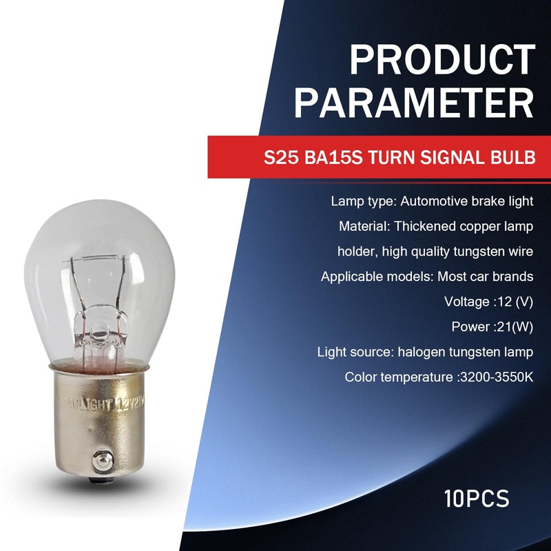 - Specifications: 10 x 12V 21W 1156 car turn signal lights, single contact, compatible with P21W 1141 S25 BA15S, etc. It is recommended that you check the bulb specifications to ensure correct installation.