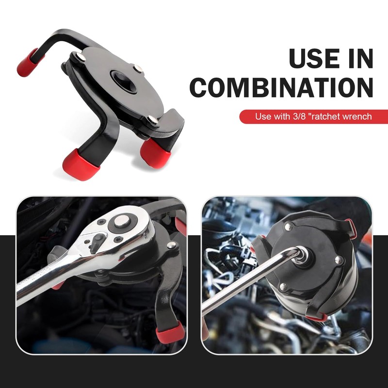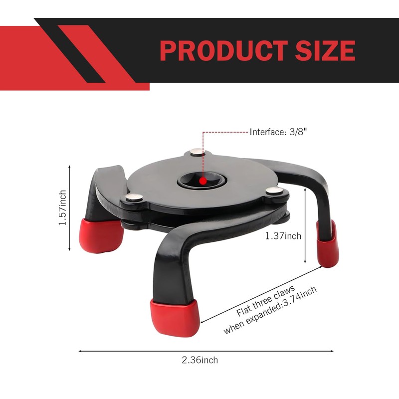 - Adjustable: The adjustable range of the three claws is 2.36"-3.74", and the size of the three claws can be automatically adjusted according to the size of the oil filter. Use with a 3/8" ratchet wrench to improve work efficiency and save effort.
