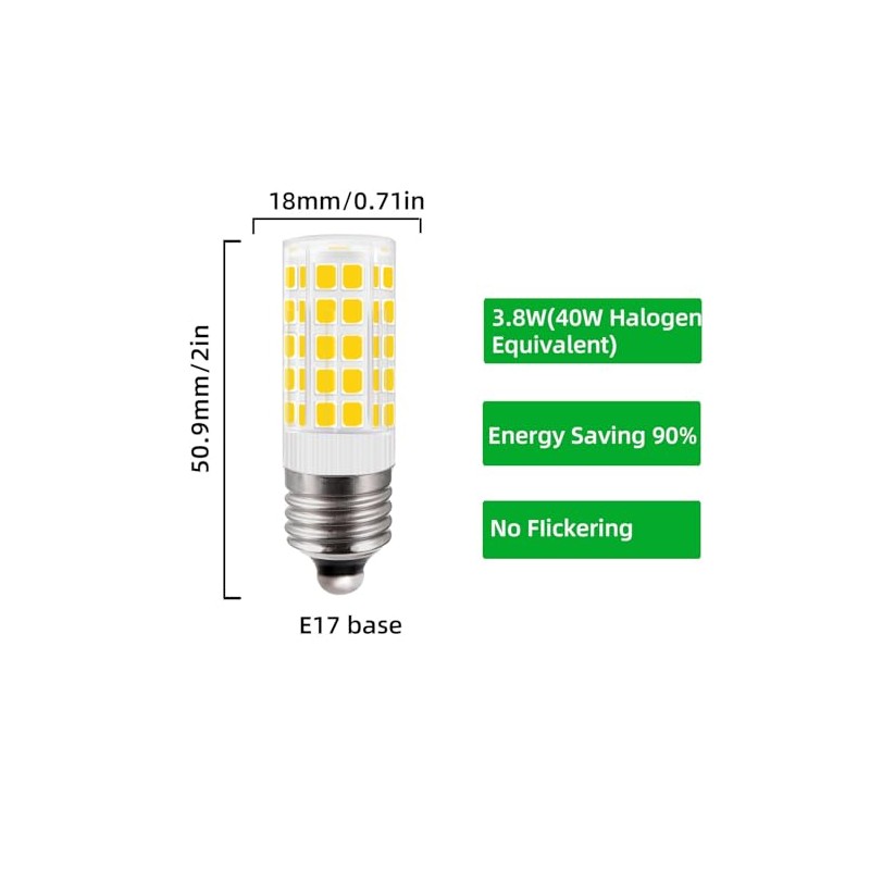 - Intermediate E17 : Suitable for range hood bulbs of E17 base. Please do not use in high temperature environments.