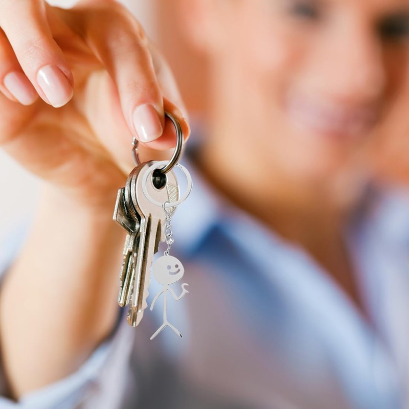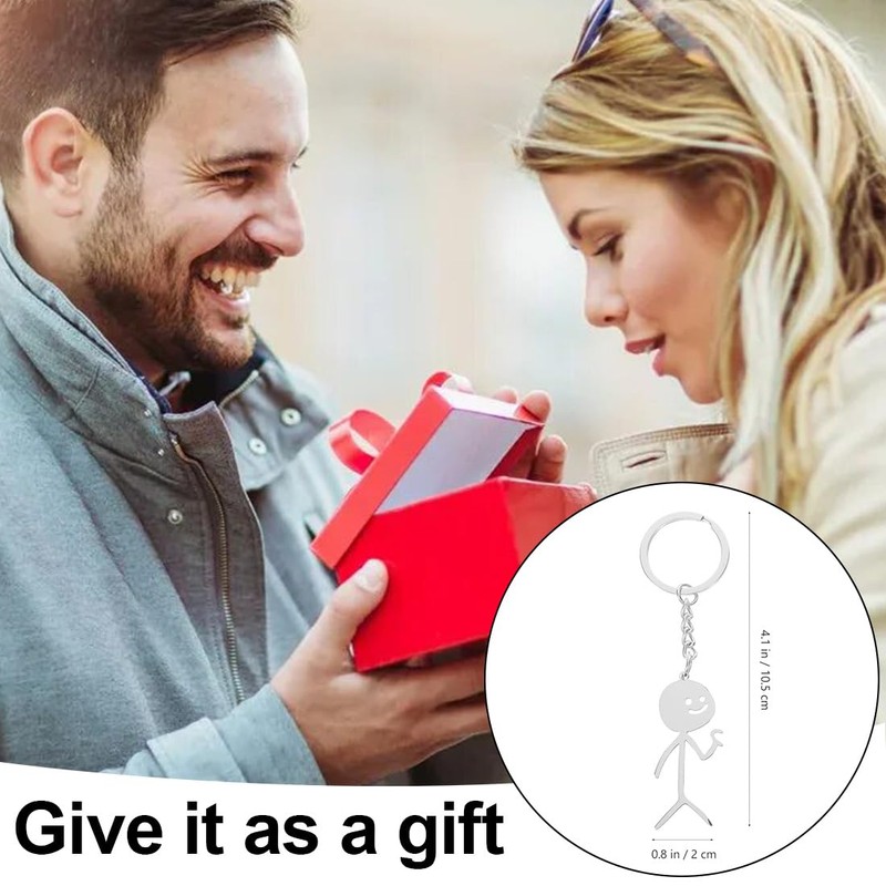 OQKAHIV 2 x Funny Smiley Little Man Sign Language Keyrings, Funny Finger Stickman Designs, Couple Key Chain, Gift Idea for Couples, Cute Pendant for Bags and Car Keys, silver
