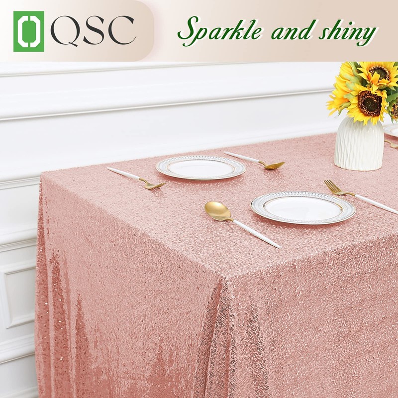 OQSQ RoseGold Sequin Tablecloth 50x80 inch, Glitter Drape table cloth, Sparkle Sequence Table overlays for Thanksgiving Day Wedding Birthday Party Baby Bridal Shower