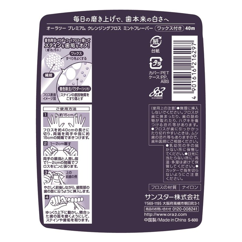 Ora2 Premium Cleansing Floss, Interdental Whitening, Unscented, Waxed, 16.4 ft (40 m) (1 x 1)