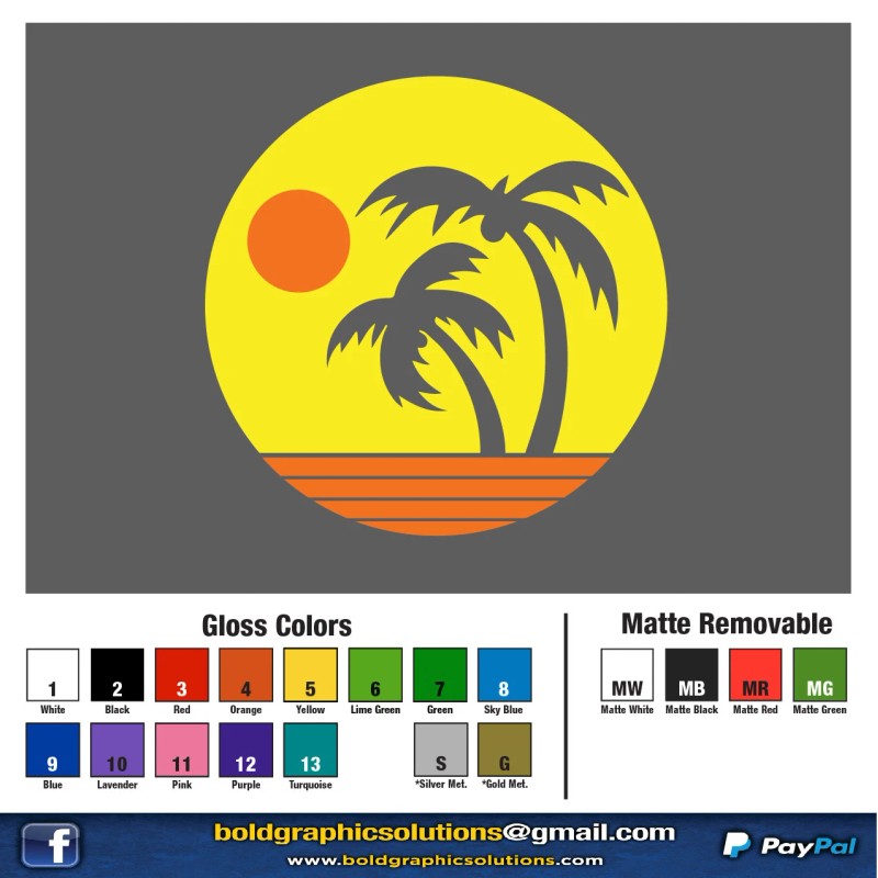 Oracal 8 inch Retro 2 Color Beach Decal Window Sticker Car Palm Ocean Sand Sun Sky
