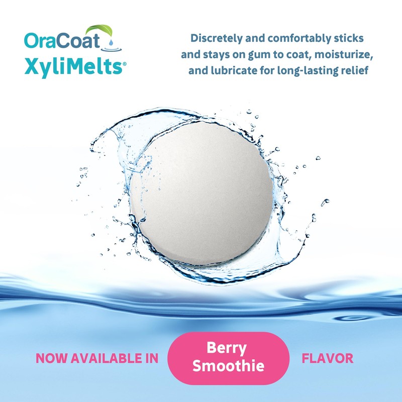 Oracoat XyliMelts for Dry Mouth Night Time or Day - Moisturizing Dry Mouth Adhering Discs, Sugar Free with Xylitol, 100 Count, Berry Smoothie Flavor, 8-Hour Relief