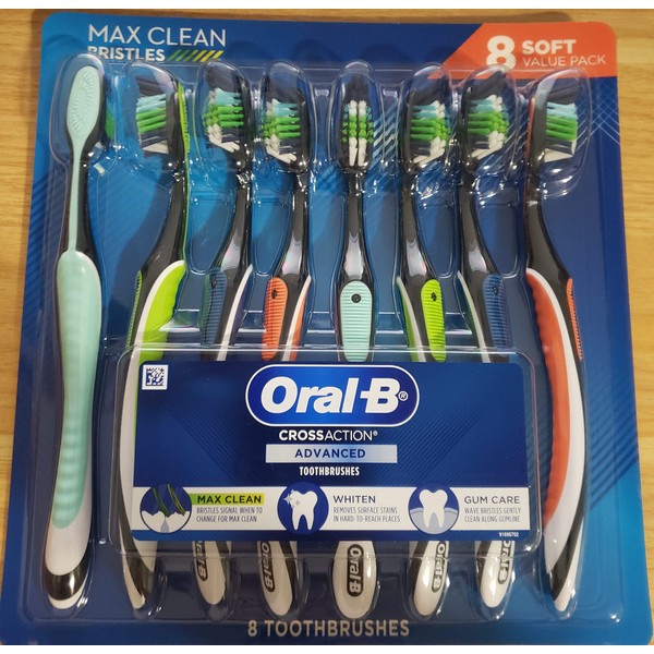 Oral-B Cross Action Advanced Toothbrush with Bacteria Guard Bristles, 8 Pack, 8Count (Soft)