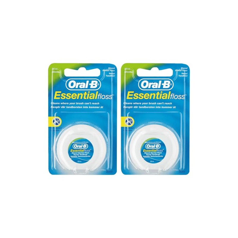 Oral Essential Floss, Waxed Mint Flavor, 50m, Pack of 2