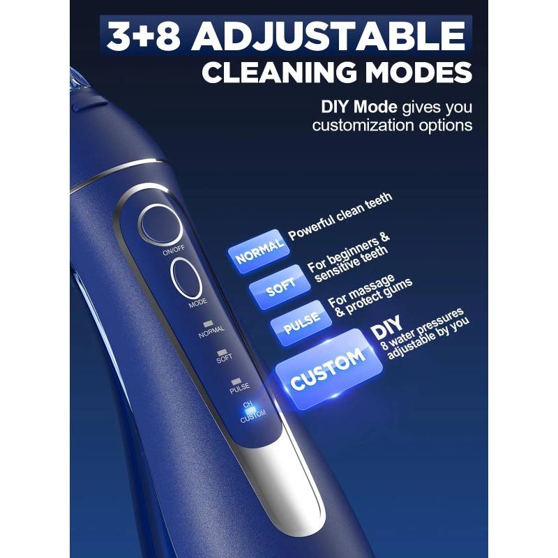 4 Flossing Modes Power Dental Flossers: Oralfree launch the portable water dental pick teeth cleaner items that was upgrade to 4 modes with Low-noise Design setting of water pressure to fulfilled your daily life use.Each mode provides you variety of using choice from standard mode, Please choose soft mode when you use dental flosser at the first time. Also helpful for bad breath, benefitful for bridge care