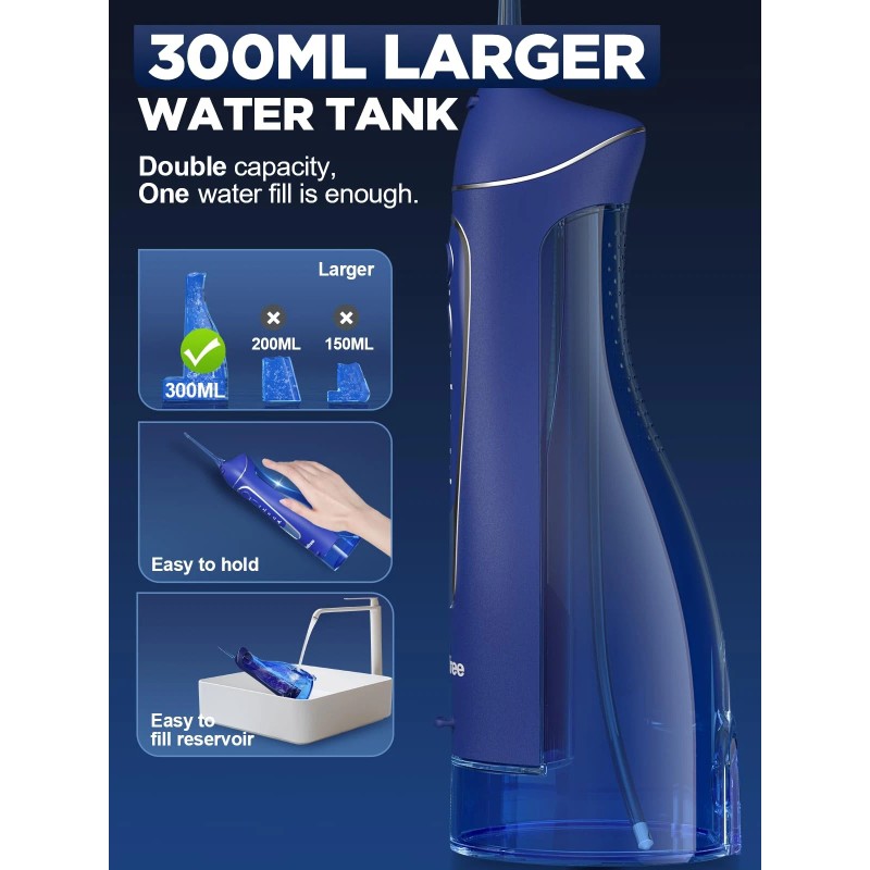 Powerful Battery With Usb Cable And Ipx7 Waterproof: Water Dental Flosser Cordless for Teeth With powerful and environmental battery, fully charged need 4 hours and used continuously for about 30 days. Come with USB Cable, applicable to a variety of charging equipements such as power bank, computer, laptop... With double-sealing rings, oral irrigator braces flossers prevent water leakage reliably, allows the dental flosser braces cleaner to be used safely for shower in bathroom