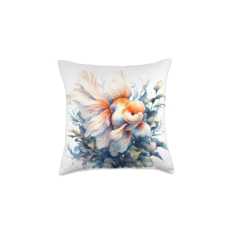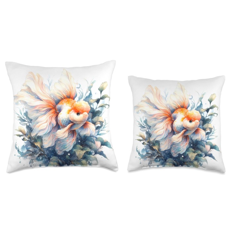 Oranda Goldfish Fancy Goldfish Lovers Aquarium Fish Design Throw Pillow