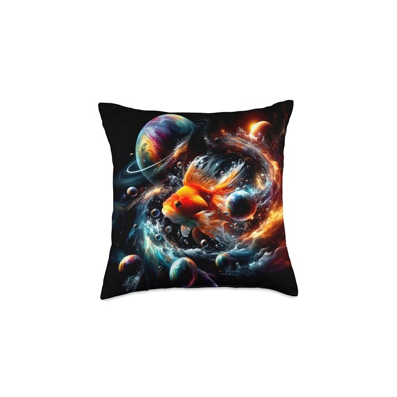 Oranda Goldfish Galaxy Planets Fancy Goldfish Fantasy Art Throw Pillow