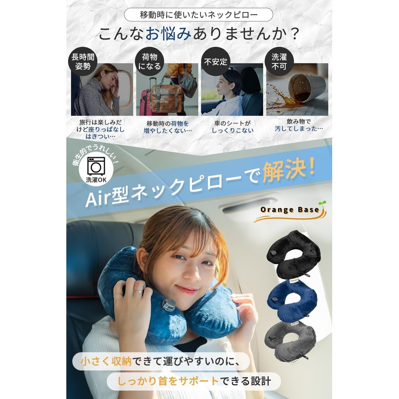 Orange Base Neck Pillow, Travel Planner, Physical The Recommended, Washable for Travel, Ultra Lightweight, Portable Pillow, Easy to Fall Asleep