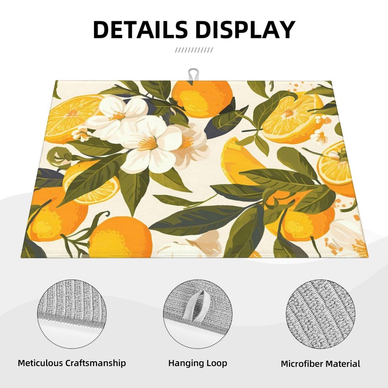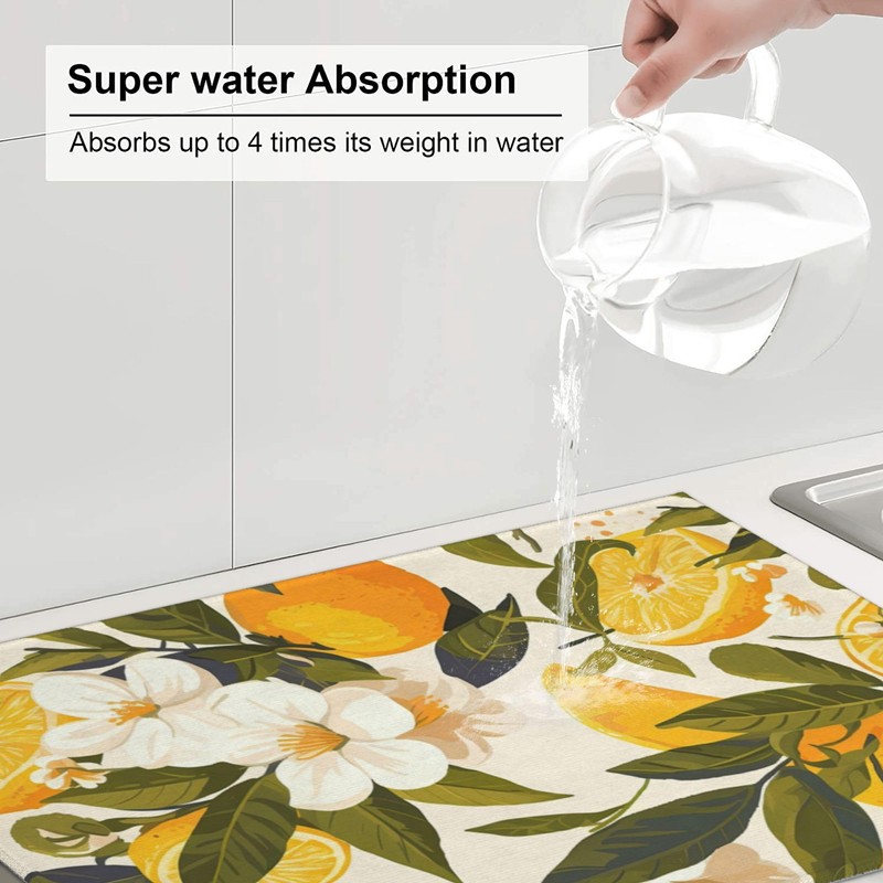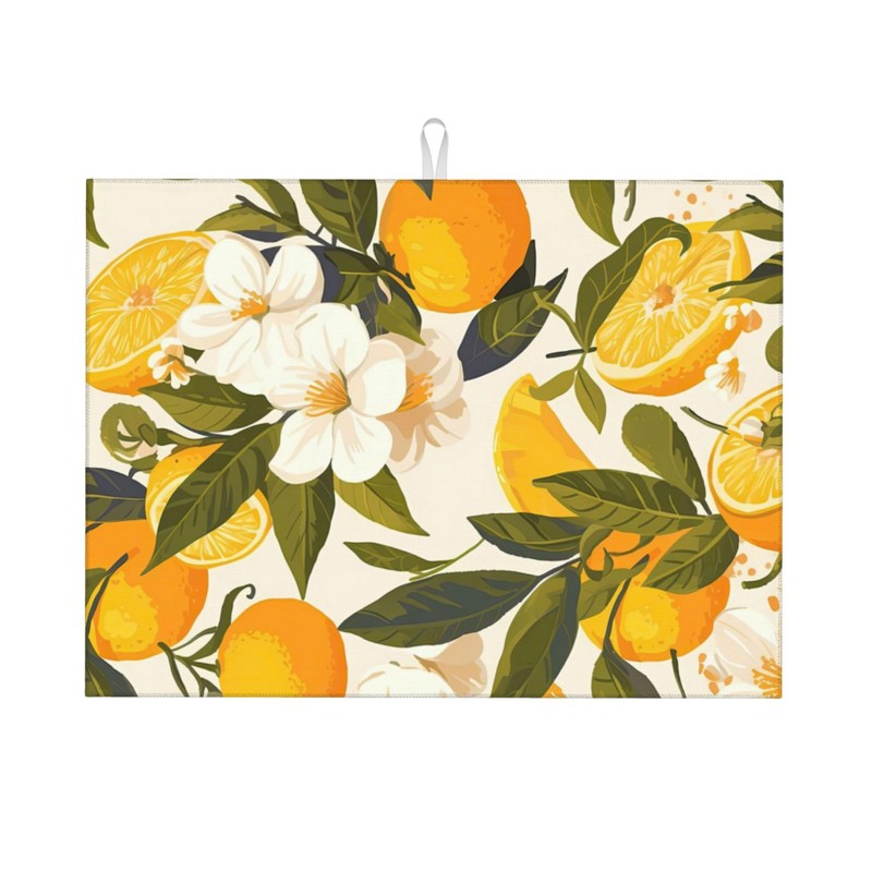 Orange Blossom Dish Drying Mats for Kitchen Counter, Absorbent Reversible Microfiber Dish Drying Pad, Multi-Use Large Drying Mat Coffee Bar Accessories 18"x24"