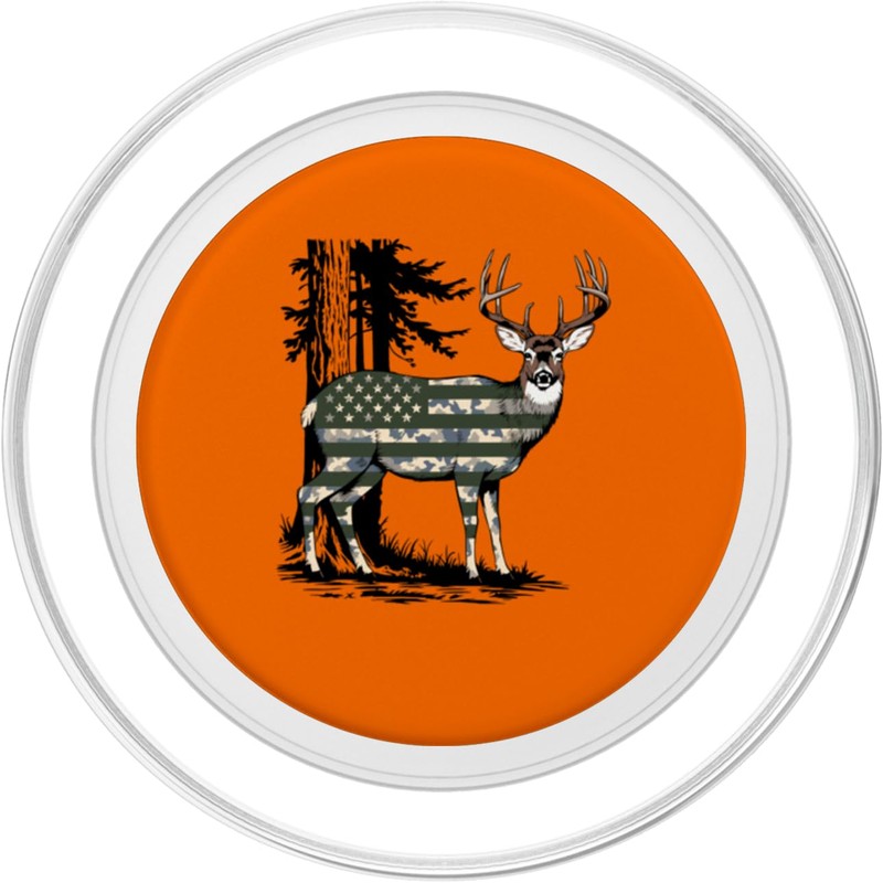 Orange Camo Deer American Flag Hunting Men Dad Deer Hunter PopSockets PopGrip for MagSafe