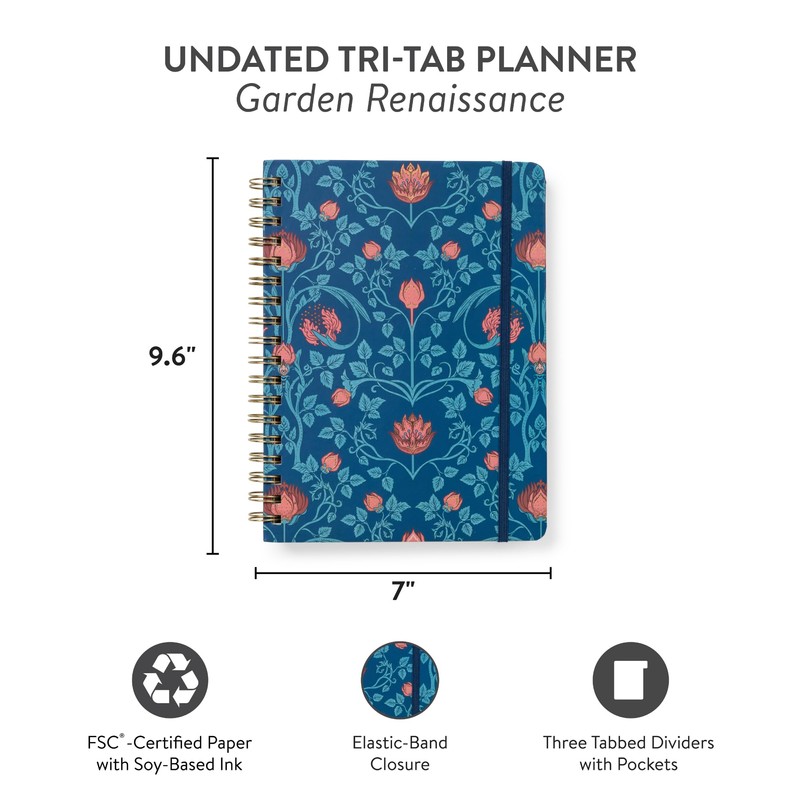 - UNDATED PLANNER: Designed with simplicity and convenience in mind, our Undated Tri-Tab Planner offers the flexibility to start planning at any time you choose. It features undated pages that allow for up to 12 months of planning, so you can jump in whenever you need!