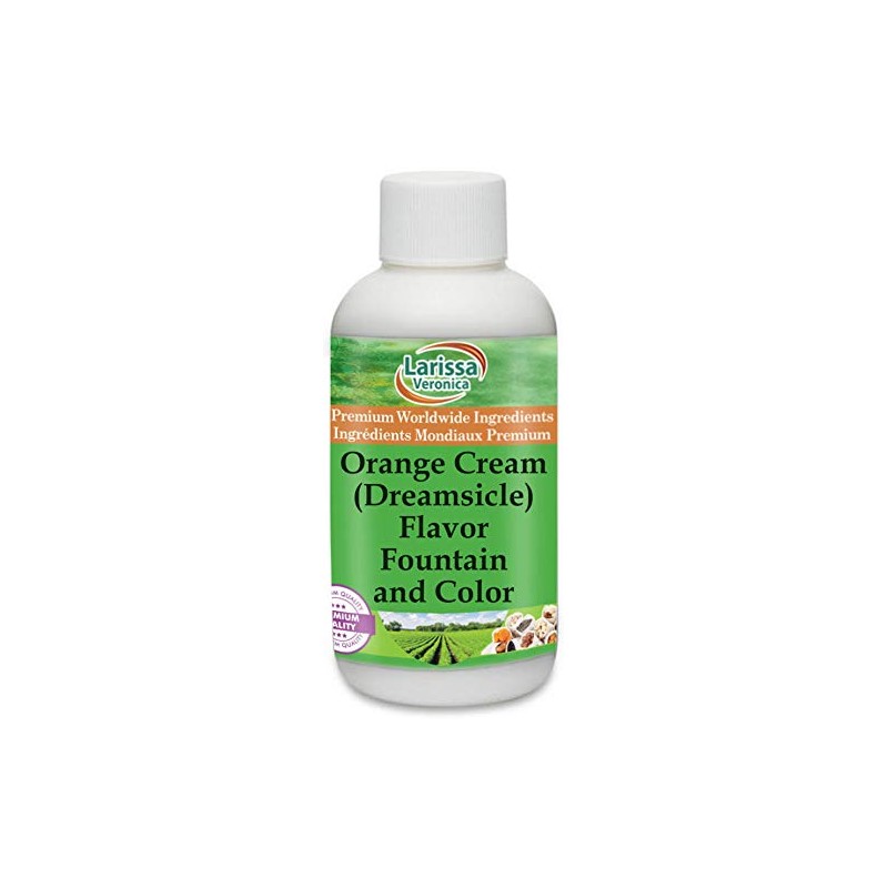 Our Orange Cream / Dreamsicle Flavor Fountain and Color is specially designed for use with sherbets, sorbets, hard ice cream, soft-serve ice cream, yogurt, shakes, smoothies and much more. This Flavor Fountain and Color is unsweetened, colored, appropriate for low-fat and / or low-sugar recipes and gluten-free. Store at room temperature. - Ice Cream or Yogurt Bases - 1 Tbsp for 1 quart (32 oz); 1-2 oz for 1 Gallon - Shakes and Smoothies - 1-2 tsp for 16 oz - The above suggested mixing amounts are based upon a 6-8 percent milkfat mix; as the fat content increases, more flavor will be required. This is just a suggested minimum starting amount - adjust as desired. - Larissa Veronica is an exclusive line of natural premium-quality products that use only the purest and finest ingredients from around the world. Larissa Veronica is hallmarked by the highest possible standards of purity, stability and freshness. All of our products are prepared with the highest elements of quality control, from raw materials through the entire manufacturing process, up to and including the moment that the bottles or bags are sealed for freshness and shipped out to you. Our highest possible standards are certified by independent laboratories and backed by our personal guarantee. - Larissa Veronica strives to make all products affordable and we are constantly researching the market to maintain our affordability and to look for new ways to serve you and the ones you love. Larissa Veronica has become a trusted household name for many families. - Larissa Veronica is packed in tamper-proof, food-grade, recyclable containers. - ZooScape is proud to be the exclusive distributor of all Larissa Veronica spices, snacks, foods and ingredients in the United States, Canada and around the world. - Shake well