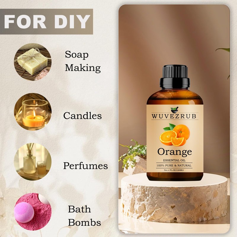 - Orange Essential Oils: Come with a bottle of 4 Fl.Oz organic pure and natural orange essential oil.