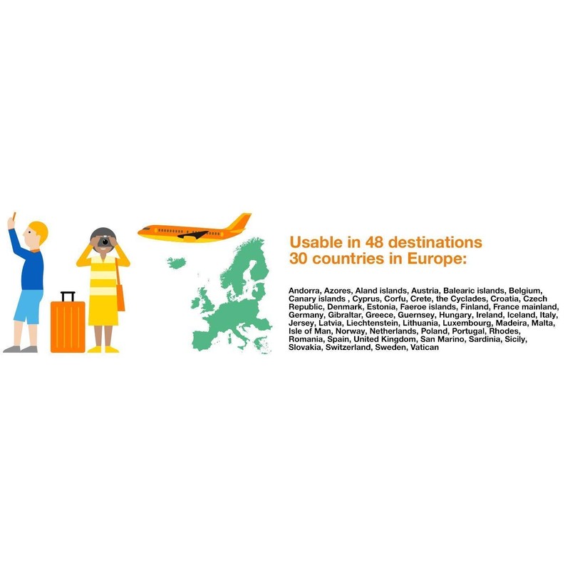 Orange Holiday Europe – 20GB Internet Data in 4G/LTE + 120 mn + 1000 Texts in 30 Countries in Europe