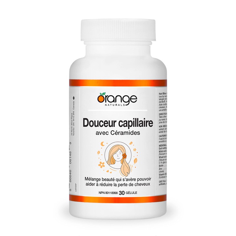 Orange Naturals - Hair Bliss with Ceramides, 30 Softgel - Helps to Decrease Hair Loss in Women by Reducing Shedding Hair - Reduction of Dandruff - Helps to Normalize the Hair Cycle