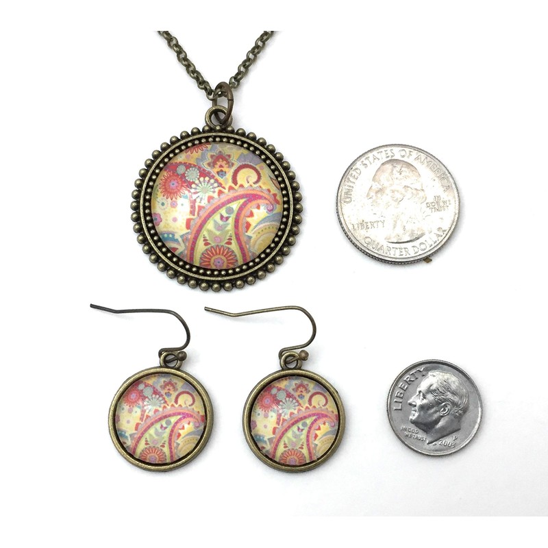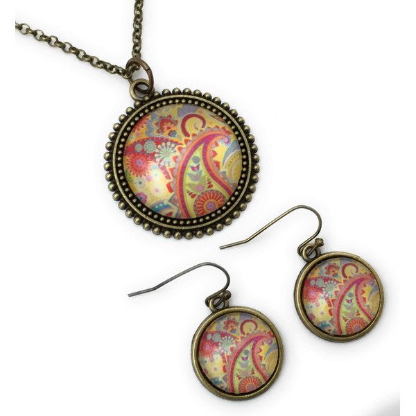 Orange Paisley Necklace and Earring Set for Women