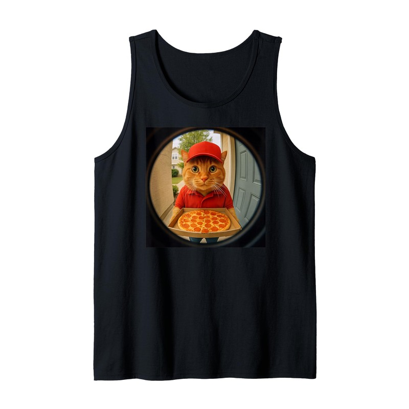 Orange Tabby Cat Pizza Delivery Peephole Tank Top