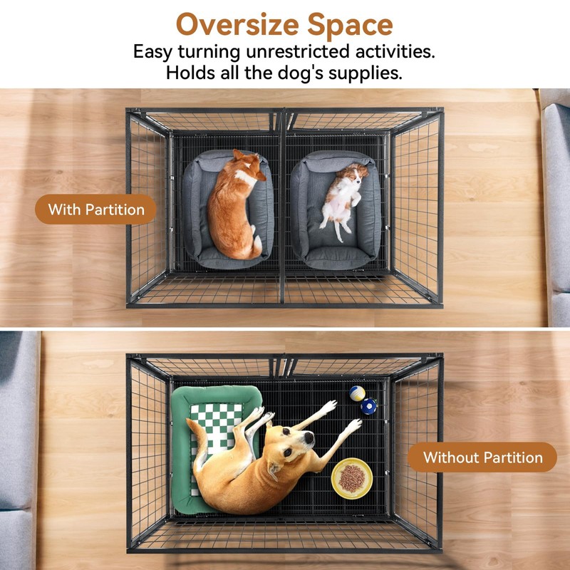- Flexible pull-out dividers:This smart dog kennel offers a versatile layout with its removable middle divider. Depending on your needs, inserting the divider to create two smaller spaces can provide housing for two small dogs together. When the divider is withdrawn it provides a spacious living space for larger dogs.