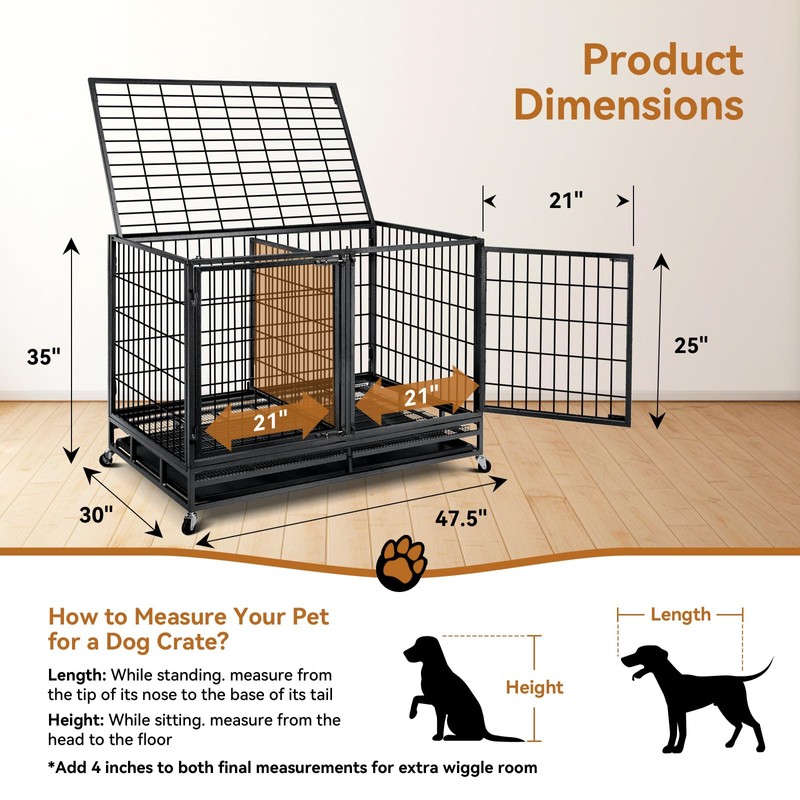 - Heavy Duty Construction:Our heavy duty dog crate is made of all metal frame with rust-resistant finish. Reinforced wire will not be deformed by pet bites or collisions. Give your pet a safe and comfortable home.