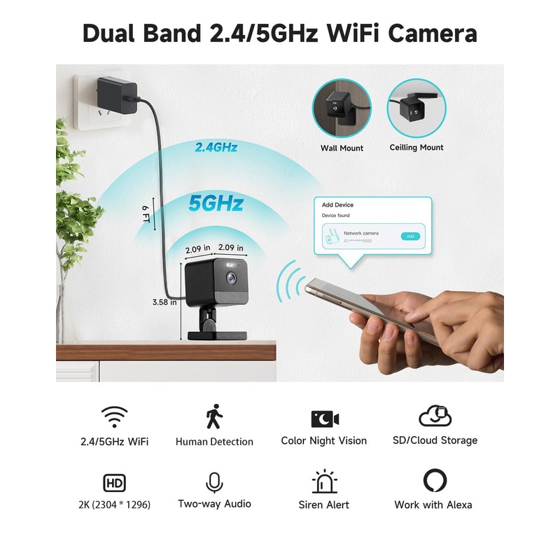 ORANZI 2K 2.4G/5G Dual-Band Security Camera Indoor, Plug-in Cameras for Home ...
