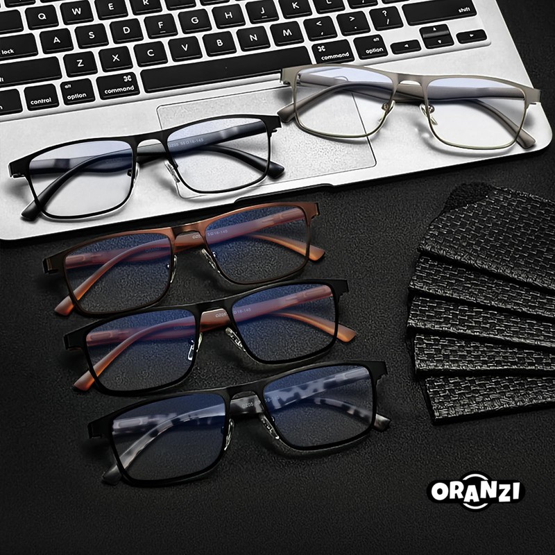 ORANZI 5 pack Business Style Reading Glasses Men Blue Light Blocking, Metal Frame Spring Hinge Durable Readers Men Women (Y1 Mix, 1.75)