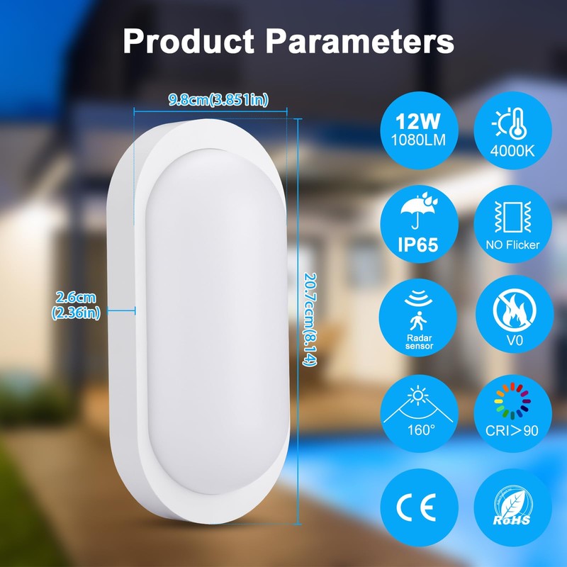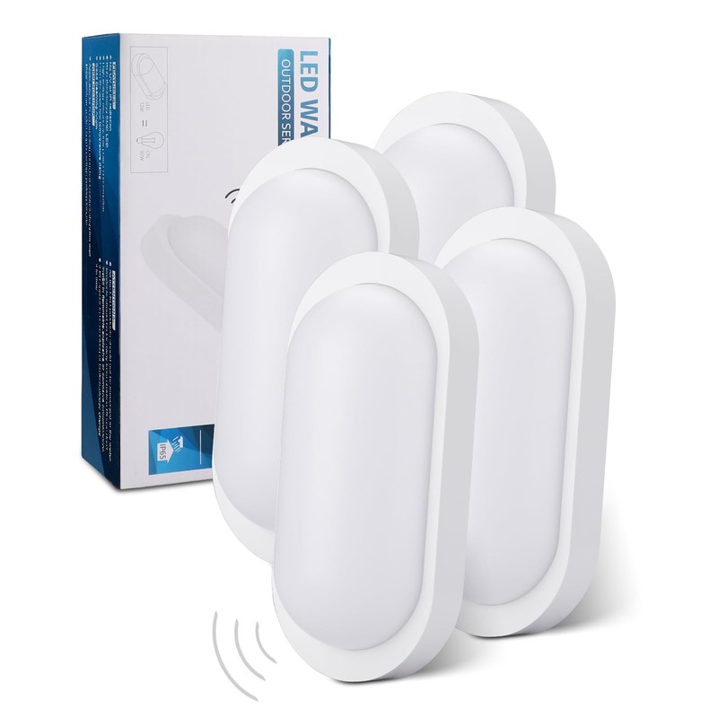 Oraymin Oraymin 4 Stcke LED Wandleuchte Kellerlampe mit Bewegungsmelder Innen, 12W IP65 LED Wandlampe 1080LM, LED Feuchtraumleuchte Oval fr Diele Garage Flur Balkon Treppe Carport Keller, 4000K, Wei?