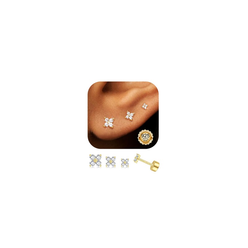 - Gold Earrings for Women: Stud earrings made of 925 silver needle with flat back makes sterling silver earrings a perfect helix piercing jewellery.Cartilage earrings plated in sterling silver,gold earrings for women can be worn alone or earring sets for multiple piercings