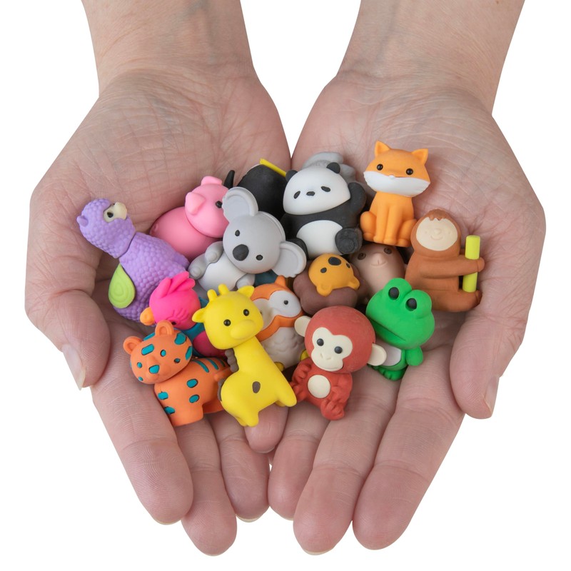 - The ORB Curiosities Animal Friends Puzzlers 3 Pack Includes 18 Total (6 in Each Pack) Individual Animal Themed Puzzle Erasers! The Assortment Will Include 1 Unicorn, 3 Cats, 1 Llama, 1 Tiger, 1 Koala, 1 Frog, 1 Owl, 1 Hedgehog, 1 Pig, 1 Penguin, 1 Sloth, 1 Lion, 1 Monkey, 1 Giraffe, 1 Panda, and 1 Cockatoo!