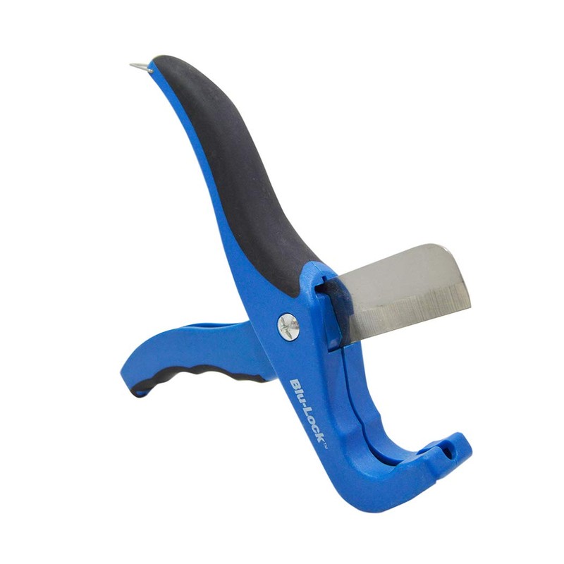 The PVC/Poly Pipe Cutter is ideal for cutting poly and plastic tubing up to 1 1/4 In. The sharp, stainless steel blade easily cuts through poly, rubber, and plastic pipe without leaving burrs. It has an ergonomic grip for comfortable use and includes a