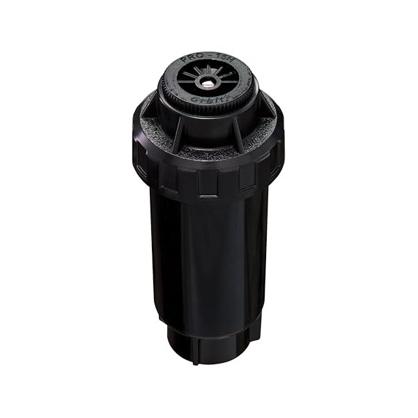 The spring-loaded pop-up sprinkler head with half spray pattern nozzle, with its standard plastic cap & long lasting, durable construction, offers convenience, ease & value. This medium area sprinkler head includes a plastic nozzle with an adjustment screw for easy flow & Radius adjustment. A Drop-In filter helps prevent a plugged nozzle. A stainless steel retraction spring & a wiper seal to keep out sand & grit.