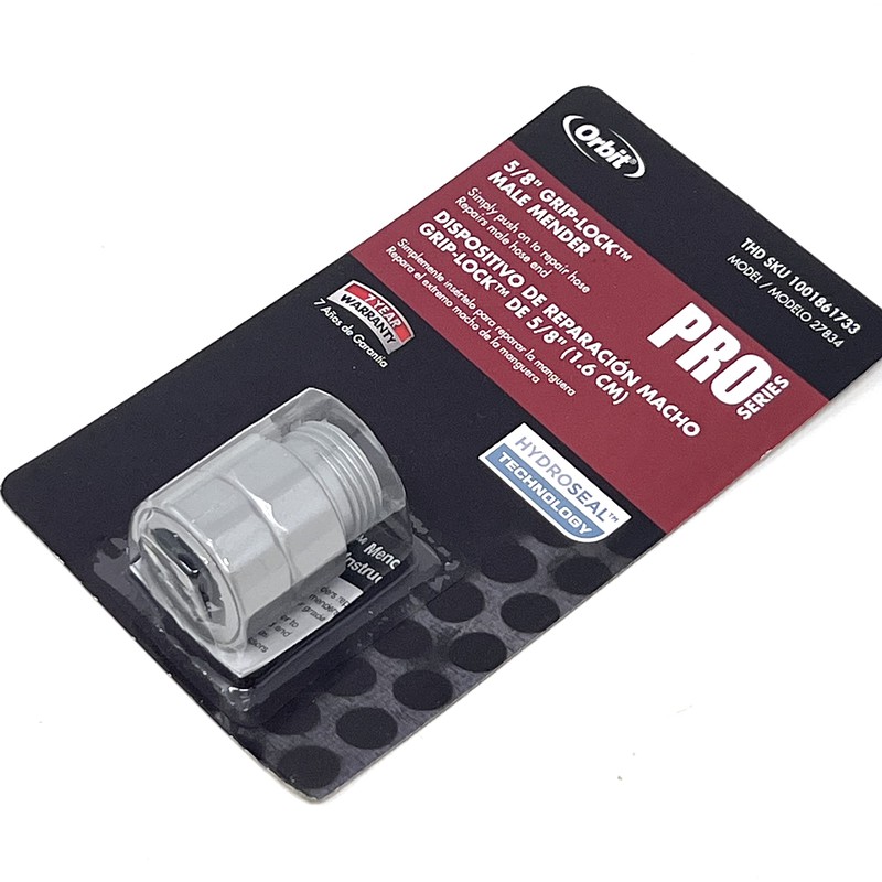 Orbit Grip-Lock Male Mender for 5/8 Inch Garden Hose Faucet End Repair, Simple Push-In Lock, Metal Construction, Leak-Free Hydroseal Technology, Pro Series
