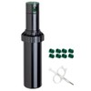 Orbit's Voyager II® gear drive sprinkler head is a number 1 consumer choice and comes with multilingual packaging for easy installation and use. Its innovative gear drive and 8 nozzles are perfect for watering medium- to large- sized areas from 35 to 45 feet. The gear mechanisms allow for this inground sprinkler head to be smooth and quiet while spraying. It is easily adjustable from the top of the head so it has part- or full-circle coverage from 40 to 360 degrees. With a key for adjusting distance and radius, this lawn sprinkler is easy to use. It has a pop-up height of 4 inches and a removable filter to prevent clogs.
