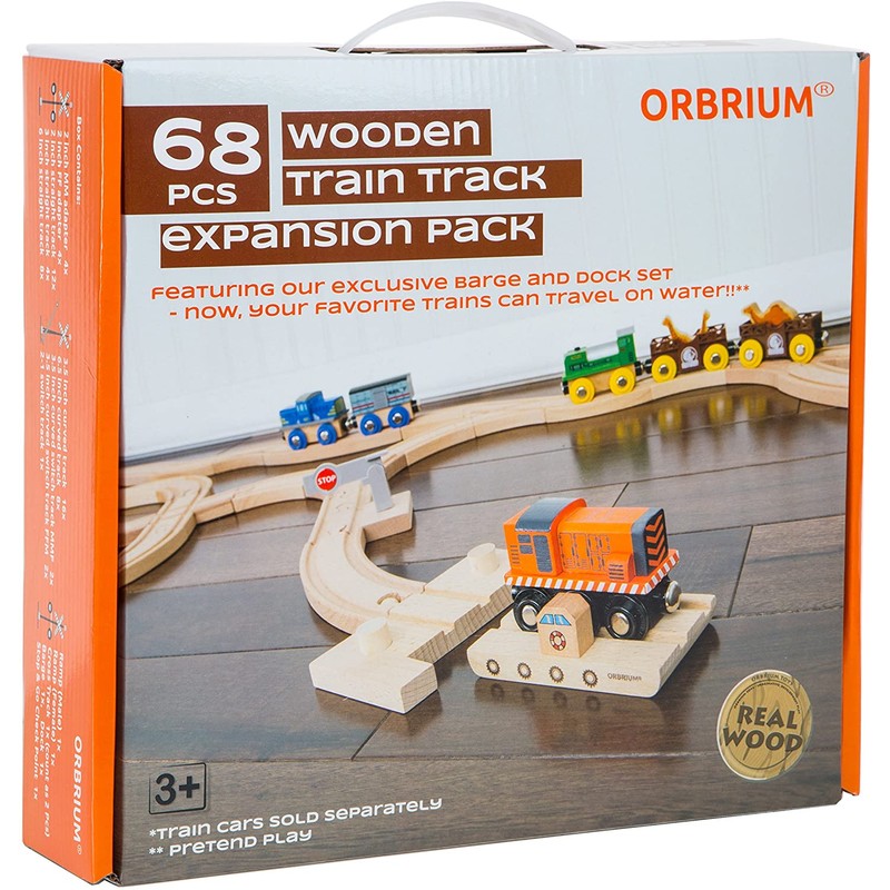 Orbrium Toys 68 Pcs Wooden Train Track Expansion Pack Compatible with Thomas Wooden Train, Brio, Thomas The Tank Engine