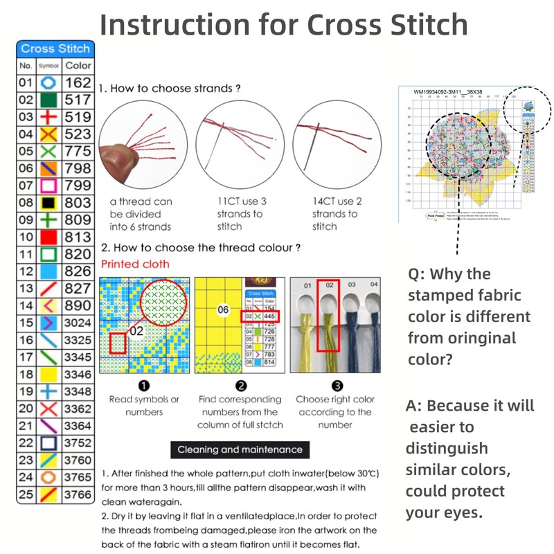 - Stress-free Stitching Experience : We understand the importance of enjoying the process of creating. That's why our Cross Stitch Kits are designed to provide a stress-free stitching experience. With pre-stamped patterns, you can easily follow along and focus on your handcraft without worrying about getting the colors wrong. The printed pattern may differ in color from the actual floss, so be sure to use the colored thread according to the symbols provided