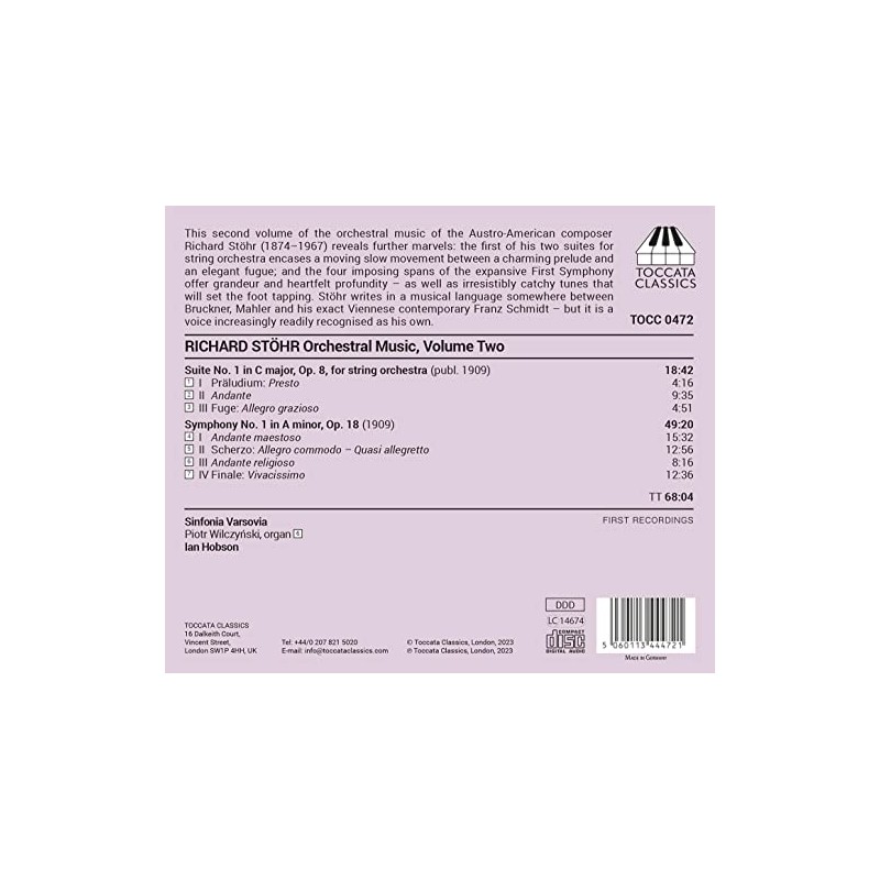| Color: | Orchestral Music Vol.2 Suite No. 1 in C Major for String Orchestra, Op. 8, Symphony No. 1 in a Minor, Op. 18. Sinfonia Varsovia; Piotr Wilczynski, Organo. |